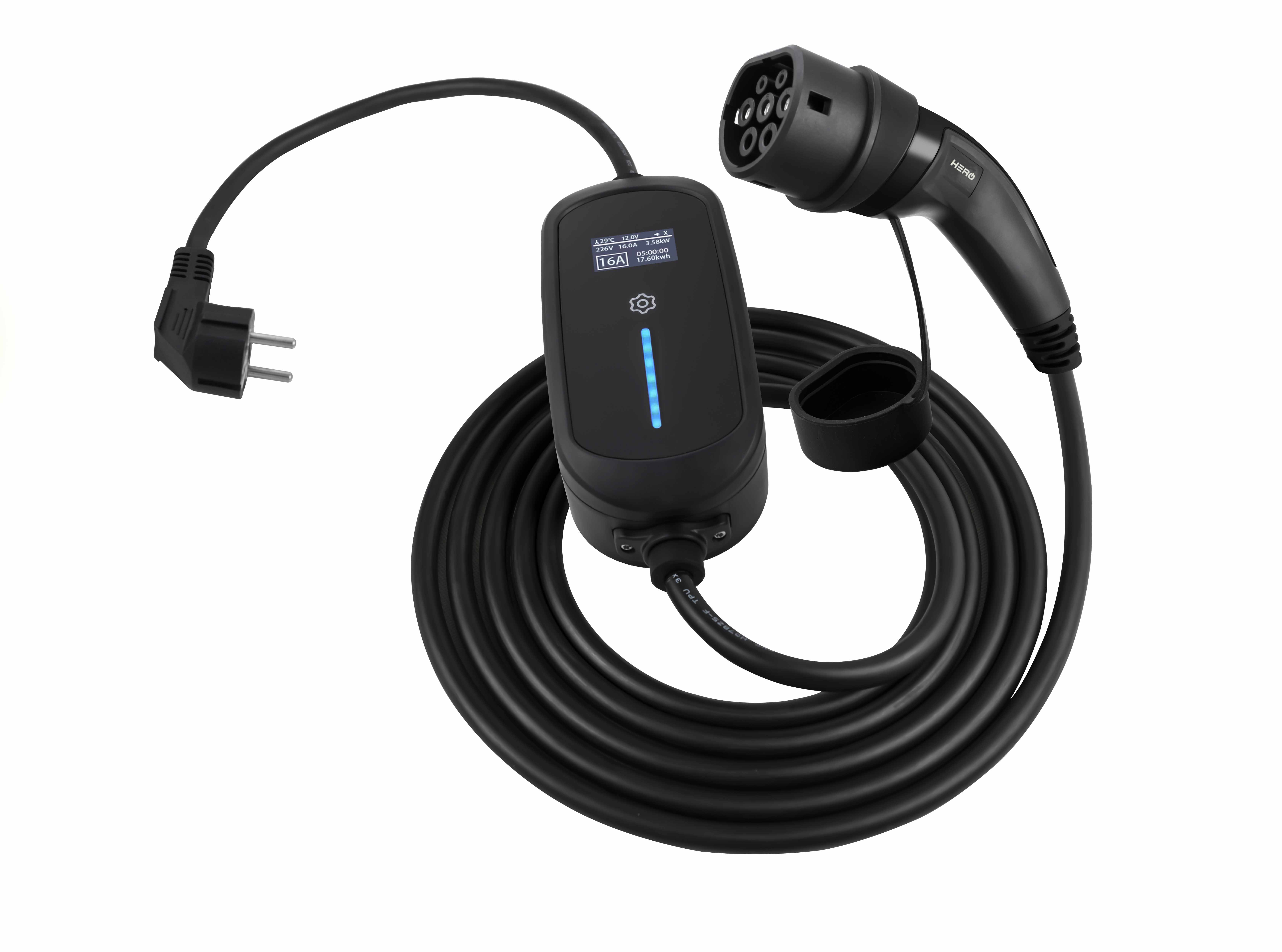 HERO EV Portable Charge erhält alle Sicherheits- und Produktionszertifikate im Elektrobereich, ISO9001, ISO 14001, OHSAS 18001, TÜV (Rheinland)/IEC 62196 und EN50620.